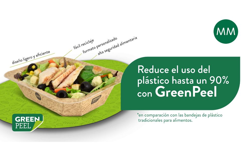 Green Peel es una solución de envasado a base de papel, que reduce el uso de plástico hasta en un 90% en comparación con las bandejas de plástico tradicionales para alimentos.